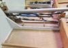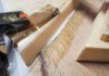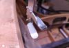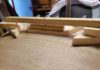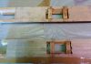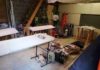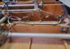 Je découpe les baguettes abimées en biseau pour y coller des nouvelles. Vous pouvez voir une réfection partielle des raidisseurs du faux-plancher avant: