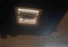 en dessous, une vitre en plastique collée sur une feuillure à fleur du plancher.