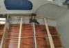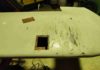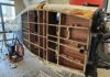 Je découpe les baguettes abimées en biseau pour y coller des nouvelles. Vous pouvez voir une réfection partielle des raidisseurs du faux-plancher avant:
