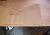 Je positionne le patron bien plaqué sur la structure puis découpé au profil exact. Sauf pour les arrondis qui seront arasés aux baguettes par la suite.