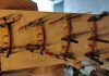 J’ai 4 baguettes de 3×13 à poser, mais pour ne pas déformer l’arrondi du contreplaqué, je n’en pose qu’une pour l’instant.
